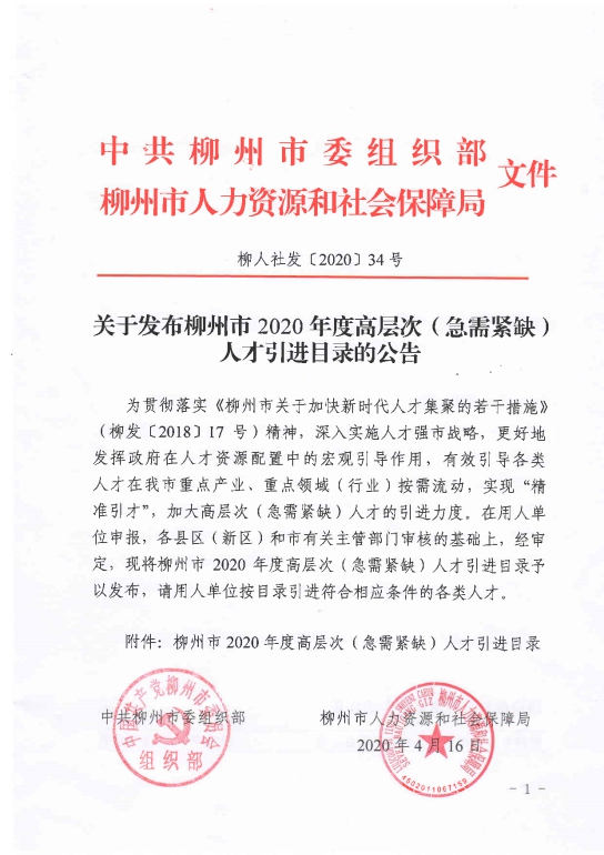 廣西柳州市2020年度高層次(急需緊缺)人才引進目錄公告【含教師崗】 歡迎加入廣西教師考編群,群號:456211830,考情、招聘信息早知道