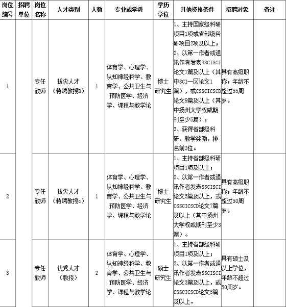 2020年江蘇教師招聘 揚(yáng)州大學(xué)體育學(xué)院人才引進(jìn)計(jì)劃