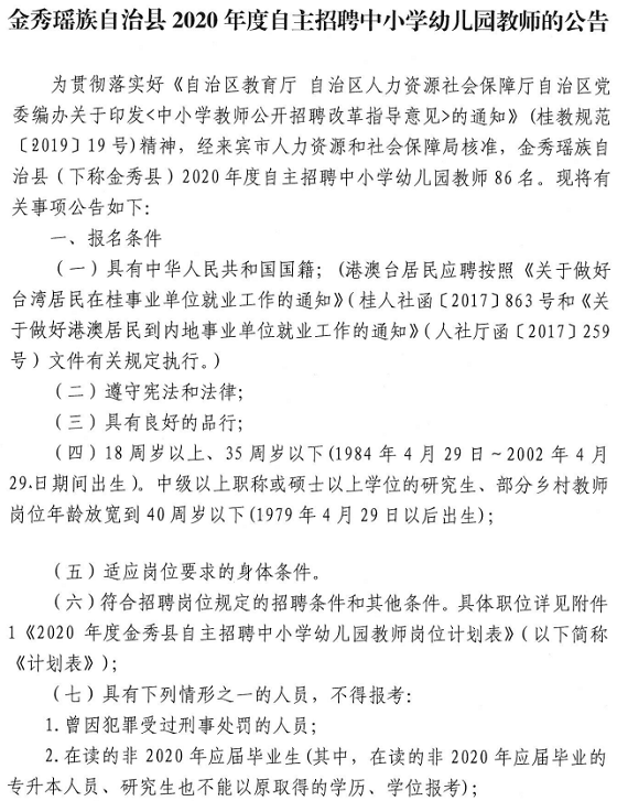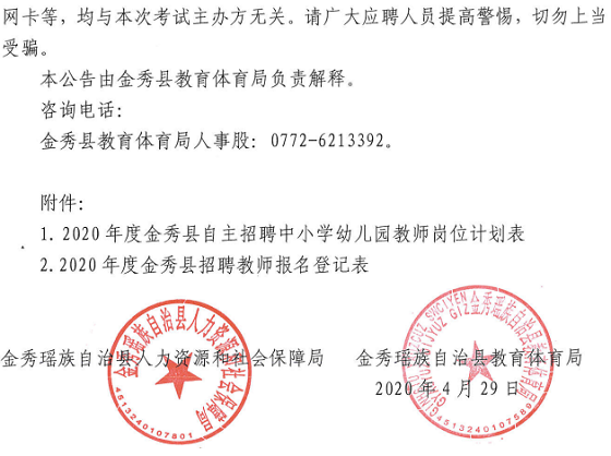 廣西來(lái)賓金秀瑤族自治縣2020年度自主招聘中小學(xué)幼兒園教師【86人】4月29日-5月15日?qǐng)?bào)名