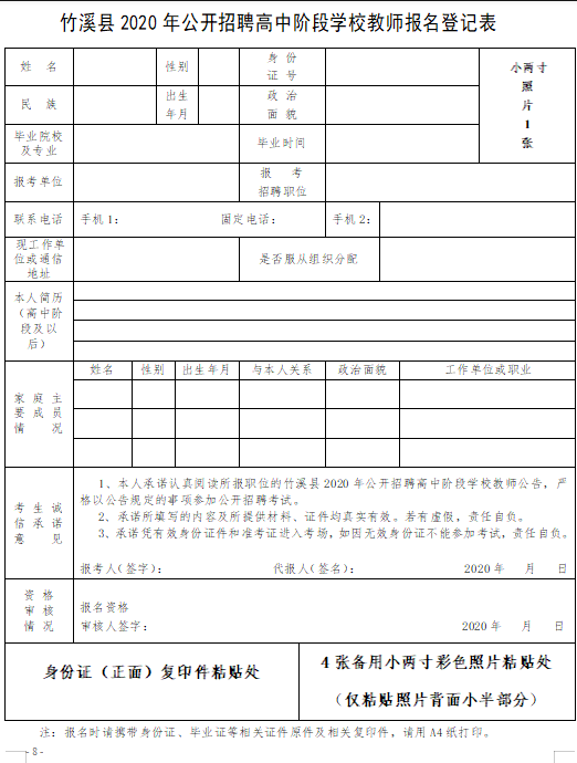 2.竹溪縣2020年公開招聘高中階段學校教師報名登記表