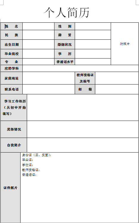 1.個(gè)人簡(jiǎn)歷模板: