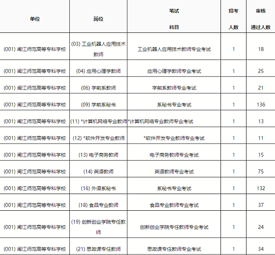 福建閩江師范高等專科學(xué)校2020年公開(kāi)招聘工作人員報(bào)考情況公告(含教師崗)