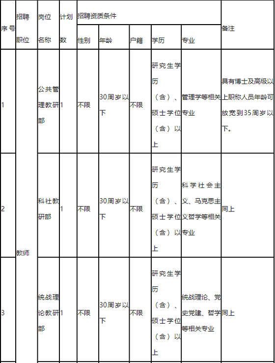 招聘理論教學教師3名,現(xiàn)場教學教師2名,具體招聘職位、要求及名額如下表: