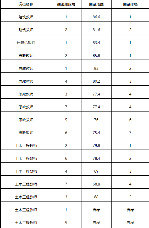 根據(jù)《2020年宜昌市教育局所屬事業(yè)單位急需緊缺人才引進實施方案》和《2020年宜昌市三峽中等專業(yè)學(xué)校急需緊缺人才引進面試工作方案》安排,現(xiàn)將面試成績公布如下: