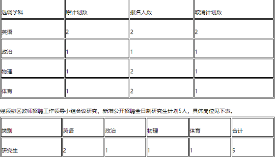 安徽阜陽(yáng)七中(合肥一中阜陽(yáng)校區(qū))2020年公開招聘全日制研究生及選調(diào)區(qū)外在編在崗優(yōu)秀教師崗位增加(取消)公告