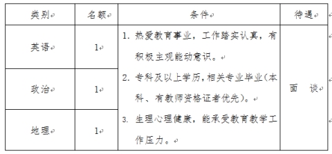 為保證今年秋季學(xué)期教育教學(xué)工作的正常進(jìn)行,經(jīng)學(xué)校研究決定,急需招聘以下專(zhuān)業(yè)教師(特別說(shuō)明:此次招聘屬于無(wú)編聘用制):
