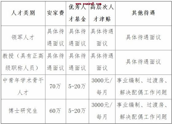 學(xué)校提供周轉(zhuǎn)住房一套(3年之內(nèi)免房租),同時(shí)提供安家費(fèi)60萬元,優(yōu)秀人才基金5-20萬元。在首聘期內(nèi)(聘任前3年),每月補(bǔ)助人才津貼3000元。配偶符合上級(jí)主管部門規(guī)定的調(diào)入條件的可以隨調(diào),不符合隨調(diào)條件的,學(xué)?梢匀耸麓砘騽趧(wù)派遣等方式安排工作。業(yè)績(jī)特別突出的博士研究生,待遇可面議。
