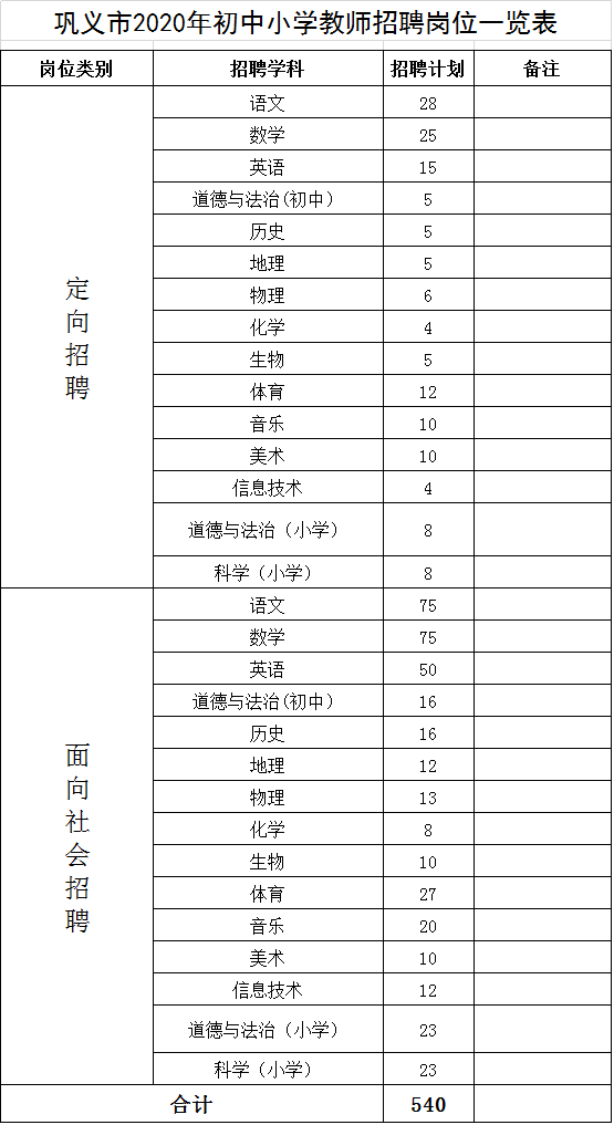 附件:鞏義市2020年初中小學(xué)教師招聘崗位一覽表