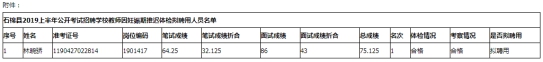 附件:石棉縣2019年上半年公開考試招聘學(xué)校教師因妊娠期推遲體檢擬聘用人員名單