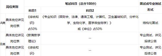 1、筆試工作由市人社部門統(tǒng)一組織,采取閉卷形式進(jìn)行,考試科目根據(jù)崗位類別如下表: