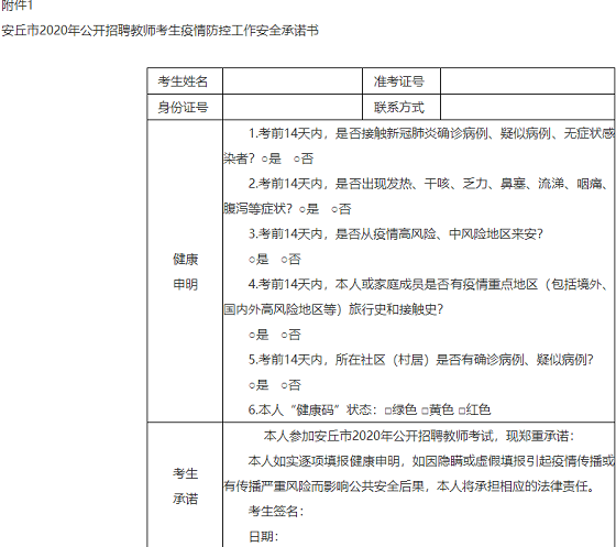 附件:1.安丘市2020年公開招聘教師考生疫情防控工作安全承諾書