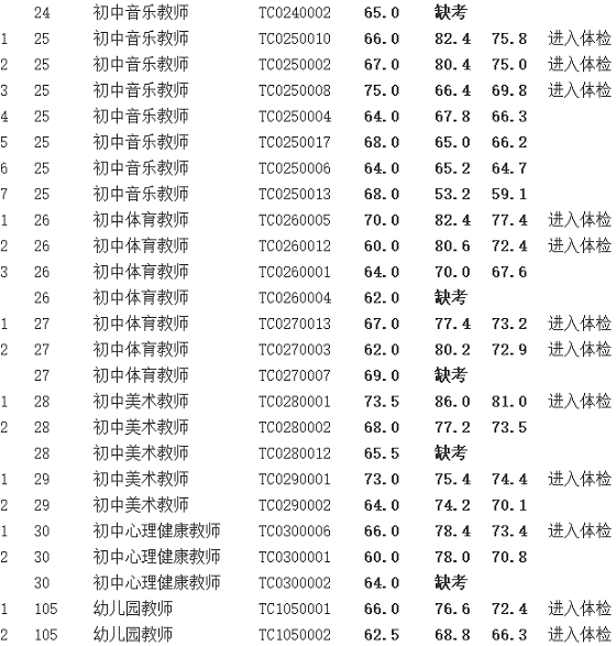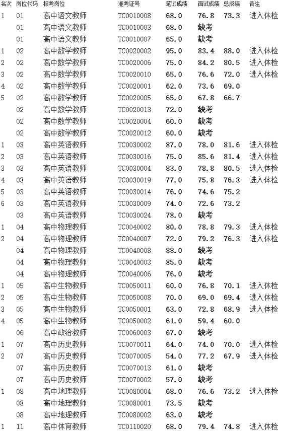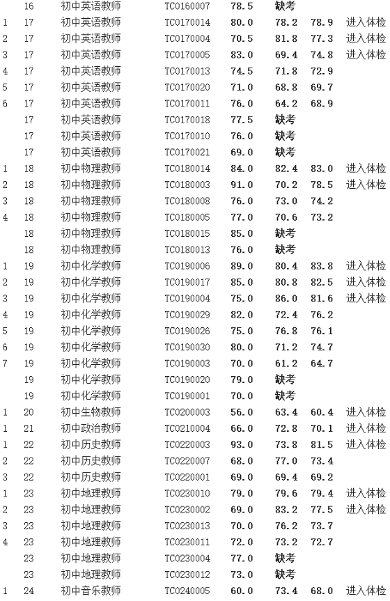 2020年太倉(cāng)市教育系統(tǒng)公開(kāi)招聘教師考試面試成績(jī)及總成績(jī)現(xiàn)予以公布(6月14日批次),本次招考根據(jù)崗位計(jì)劃招錄人數(shù)(部分崗位按核減后人數(shù)),在各崗位成績(jī)合格者中按總成績(jī)從高到低確定進(jìn)入體檢人選。領(lǐng)取體檢通知單時(shí)間:6月15日下午14:00—16:30。領(lǐng)取地點(diǎn):太倉(cāng)市青少年活動(dòng)中心(太倉(cāng)市東倉(cāng)南路98號(hào)),請(qǐng)?jiān)谝?guī)定時(shí)間前來(lái)簽約,逾期不予辦理。未進(jìn)入簽約人員請(qǐng)?jiān)谙嗤瑫r(shí)間和地點(diǎn)領(lǐng)回相關(guān)原件。