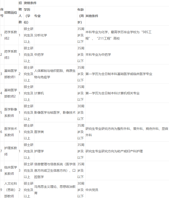說明:1、崗位條件由江西醫(yī)學高等?茖W校負責解釋。