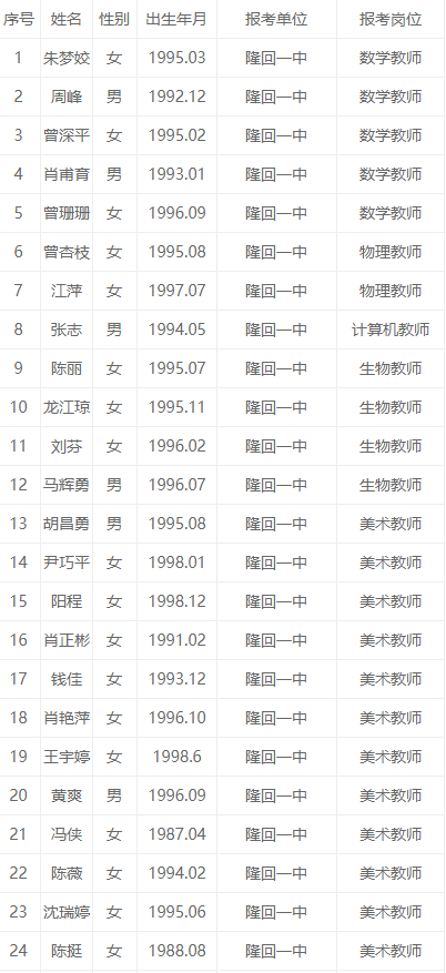 附件:2020年隆回縣縣直事業(yè)單位人才引進(jìn)網(wǎng)上報(bào)名資格初審合格人員名單(排名不分先后)