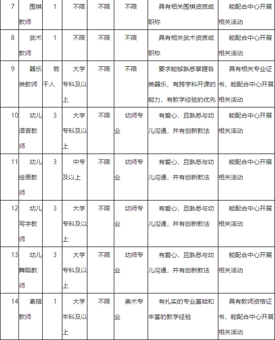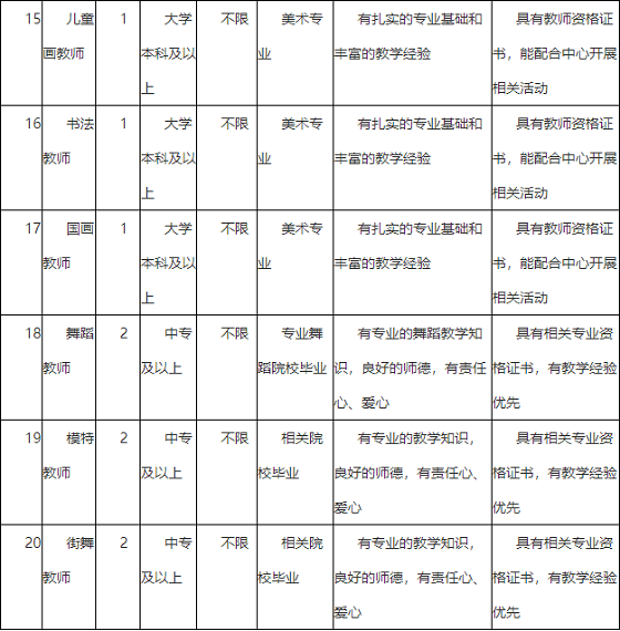 2020年福州教師招聘 福建福州青少年活動中心招聘外聘教師公告