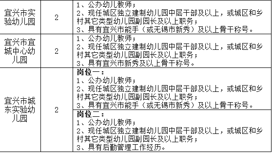 宜興市實驗中學等17所學校(幼兒園)的20個校級副職崗位,詳見“競聘條件”。