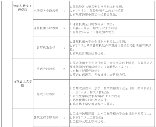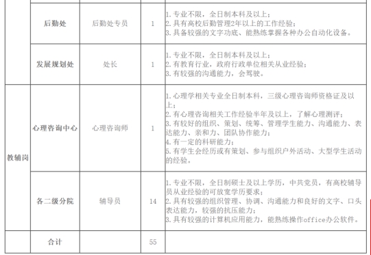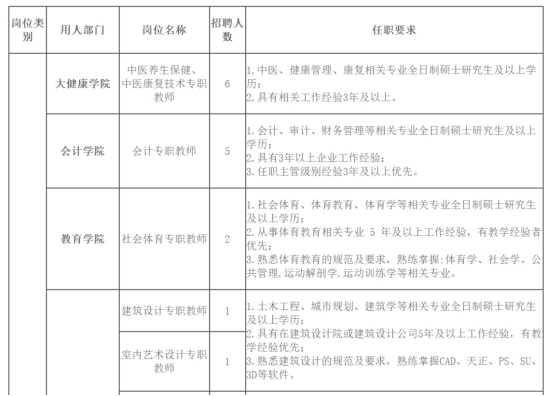 本次共招聘專職教師34名、行政崗6名、教輔崗15名。