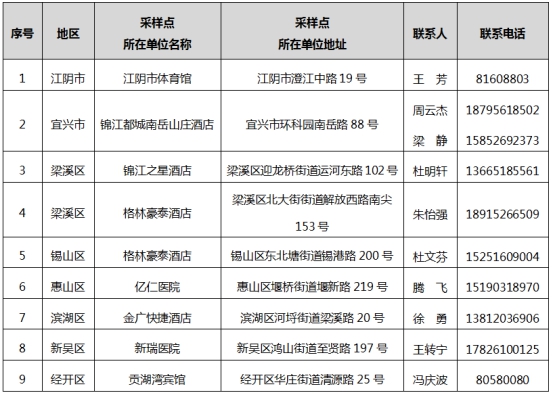 無(wú)錫市新冠病毒檢測(cè)采樣服務(wù)點(diǎn)名單