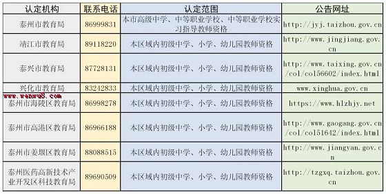 根據(jù)國家和省有關(guān)規(guī)定,幼兒園、小學(xué)和初級中學(xué)教師資格,由我市各縣級教育行政部門認定。高級中學(xué)教師資格、中等職業(yè)學(xué)校教師資格和中等職業(yè)學(xué)校實習(xí)指導(dǎo)教師資格,由泰州市教育局認定。