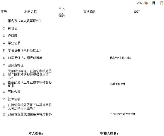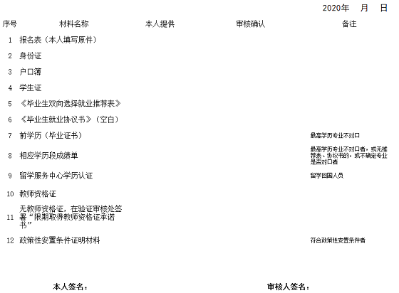 請報考者按類別分別提供相應材料的原件和復印件,并在相應的“本人提供”欄內打“√”,交驗證審核處對應崗位審核組進行審核確認。