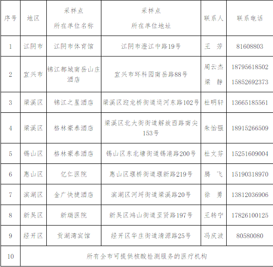 無(wú)錫市新冠病毒檢測(cè)采樣服務(wù)點(diǎn)名單
