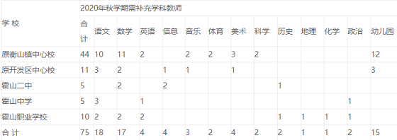2020年六安教師招聘 安徽六安霍山縣城區(qū)學(xué)校公開選調(diào)教師【75人】