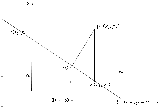 過P作直線的垂線,垂足為Q,則|PQ|即是點P到直線的距離。(如圖4—4所示)