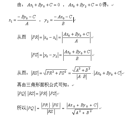 [出示問題]在平面直角坐標系中,如果已知某點P的的坐標為(),直線的方程是Ax+By+C=0,(如圖所示),怎樣由點的坐標和直線的方程去直接求點P到直線的距離?