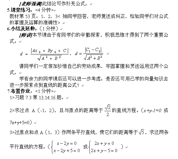 1)、使學生掌握點到直線的距離公式及結構特點,并能熟練準確的應用這一公式,達到理解掌握知識的目的。