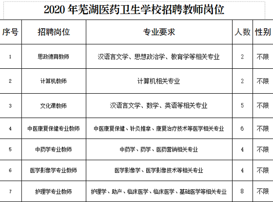 2020年蕪湖教師招聘 安徽蕪湖醫(yī)藥衛(wèi)生學校教師招聘【31人】