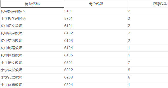 招聘學(xué)校管理人員4名,中小學(xué)教師30名,具體崗位如下: