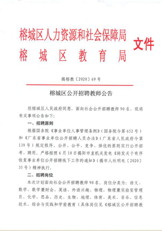 廣東揭陽榕城區(qū)2020年公開招聘教師公告【90人】