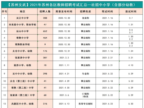 二、蘇州2021年教師招聘考試——中小學(xué)教師(包含部分幼教)招聘匯總