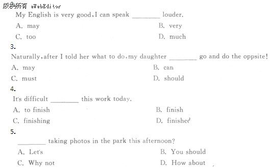 [名師詳解]只有much才可以修飾形容詞比較級louder,所以本題選D。