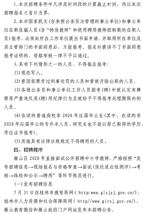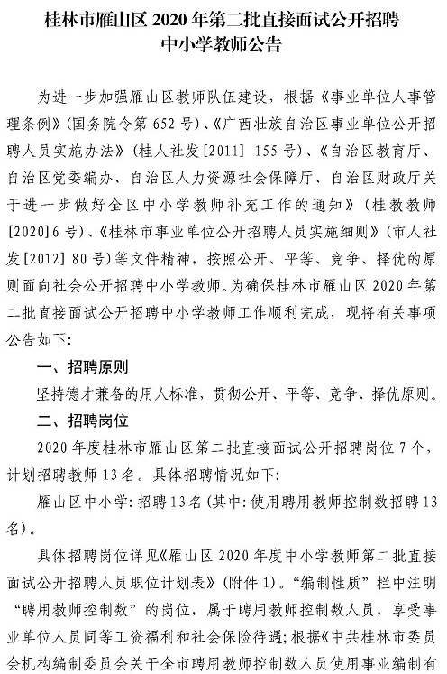 2020年桂林教師招聘 廣西桂林市雁山區(qū)第二批直接面試公開招聘中小學(xué)教師公告【13人】
