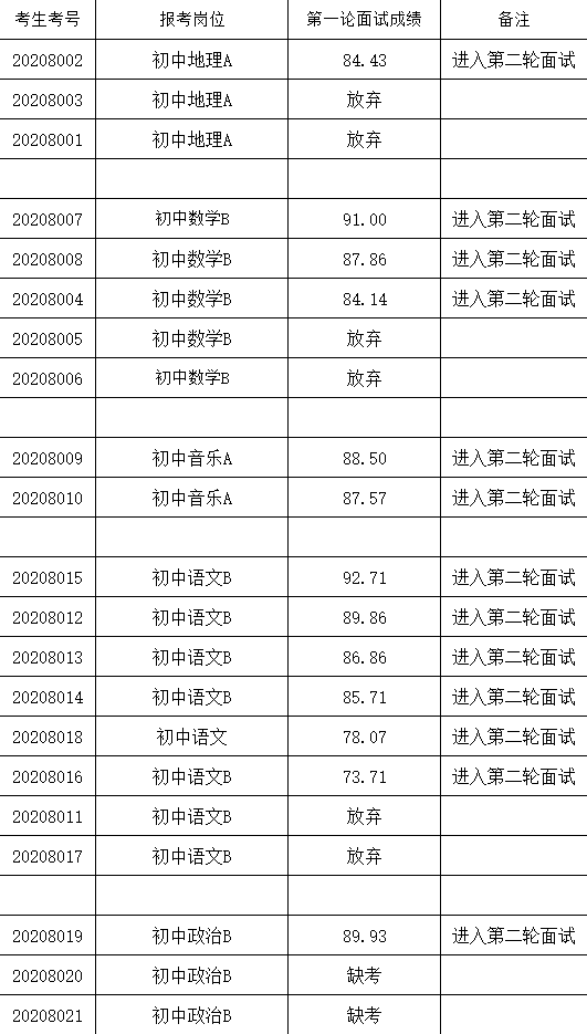 請(qǐng)下列進(jìn)入第二輪面試的考生于2020年8月4日上午8點(diǎn)前到常熟市常清中學(xué)參加面試。