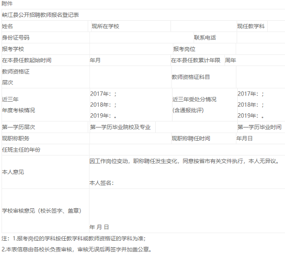 附件:峽江縣公開選調(diào)教師報(bào)名登記表