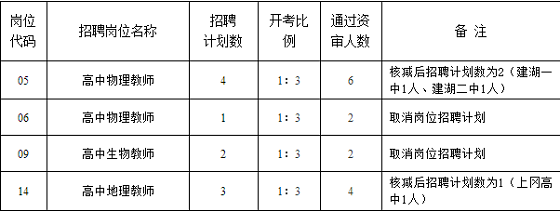 根據(jù)2020年7月24日發(fā)布的《建湖縣部分中小學(xué)2020年第二次公開招聘教師公告》精神,因部分崗位審核通過人數(shù)未達(dá)開考比例,決定對這部分崗位招聘計劃作出調(diào)整,詳見下表。取消崗位招聘計劃的應(yīng)聘人員可改報其他符合條件的崗位,報名截止時間為8月6日上午12:00前。
