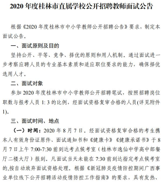 2020年桂林教師招聘 廣西桂林市直屬學(xué)校公開招聘教師面試公告