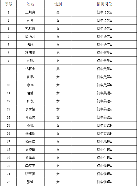 2020年常熟市常清中學(xué)公開招聘中學(xué)教師擬錄用名單