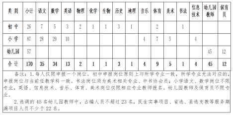 為解決城區(qū)初中、小學、幼兒園師資短缺問題,經(jīng)縣政府常務會議研究,決定從全縣農村學校公開選調一批教師,現(xiàn)將有關事宜公告如下: