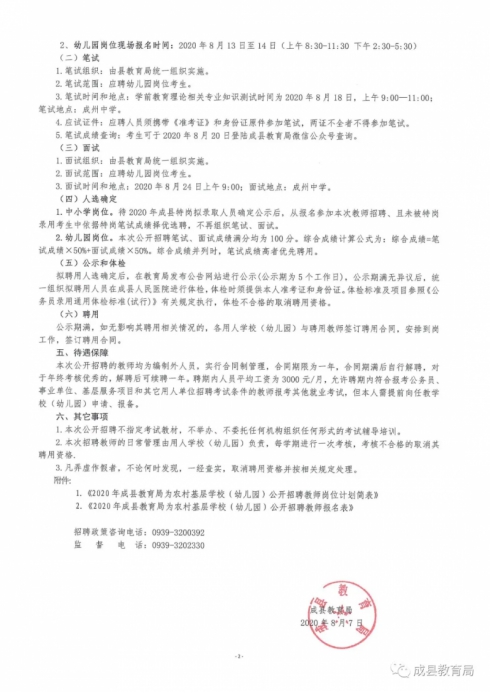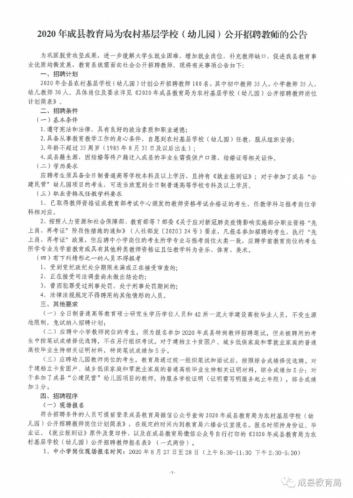 2020年甘肅隴南市成縣教育局為農(nóng)村基層學(xué)校(幼兒園)公開(kāi)招聘教師公告【100人】