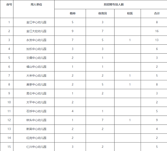 根據(jù)學(xué)前教育“兩個比例”提升的要求,我縣公辦幼兒園進行了擴招,根據(jù)各幼兒園實際需要,現(xiàn)面向社會公開招聘勞務(wù)派遣人員,特公告如下: