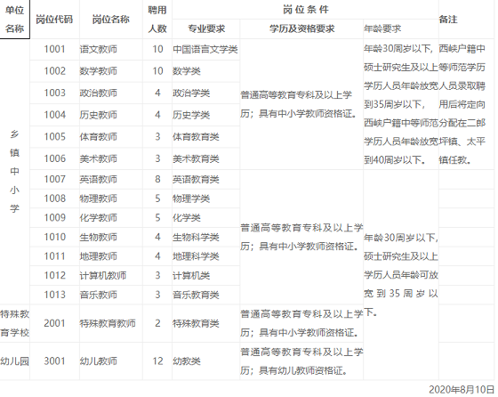 新招聘教師由教體局面向基層、面向城區(qū)以外需求教師的鄉(xiāng)鎮(zhèn)進(jìn)行分配,其中報(bào)考中小學(xué)語(yǔ)文、數(shù)學(xué)、政治、歷史、體育、美術(shù)教師崗位的西峽戶籍中等師范學(xué)歷人員將定向分配至二郎坪鎮(zhèn)和太平鎮(zhèn)。對(duì)招錄的特殊教育教師分配到縣特殊教育學(xué)校任教;對(duì)招聘的幼兒教師分配到鄉(xiāng)鎮(zhèn)幼兒園任教,若龍成社區(qū)幼兒園今秋能開(kāi)班,則根據(jù)實(shí)際需要將新招聘幼兒園教師全部或部分分配到該社區(qū)幼兒園任教。