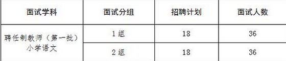 3、小學(xué)語文學(xué)科因面試人數(shù)較多,采用考生自主選組的方式進(jìn)行面試,即:考生按照筆試成績(jī)從高到低,依次自主選擇面試1組或2組,分組后再抽簽決定在組內(nèi)的面試順序。面試結(jié)束后,每組評(píng)委打分即為考生最終面試成績(jī)?荚嚠(dāng)天若有考生缺考,根據(jù)缺考人數(shù),從1組開始依次循環(huán)扣減1個(gè)面試人數(shù)。