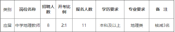 教育專項(xiàng)編制教師達(dá)不到開考比例核減計(jì)劃的招聘崗位(1個(gè)):