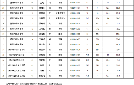2020年5月?lián)P州教師招聘 揚(yáng)州市蜀岡-瘦西湖風(fēng)景名勝區(qū)學(xué)校公開招聘教師體檢人員名單