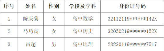 江蘇省梁豐高級(jí)中學(xué)2020年擬引進(jìn)高層次教育人才人選名單