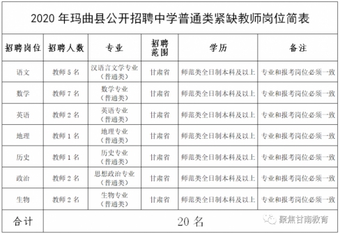 2020年甘肅甘南州瑪曲縣公開(kāi)招聘中學(xué)普通類緊缺教師公告【20人】