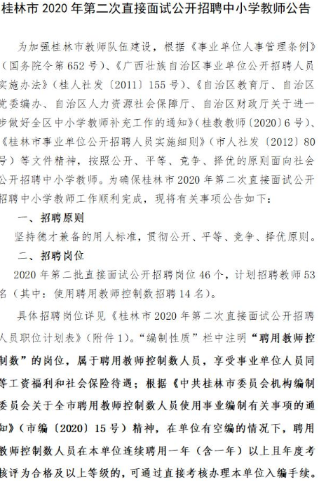 2020年桂林教師招聘 廣西桂林市第二次直接面試招聘中小學教師【53人】